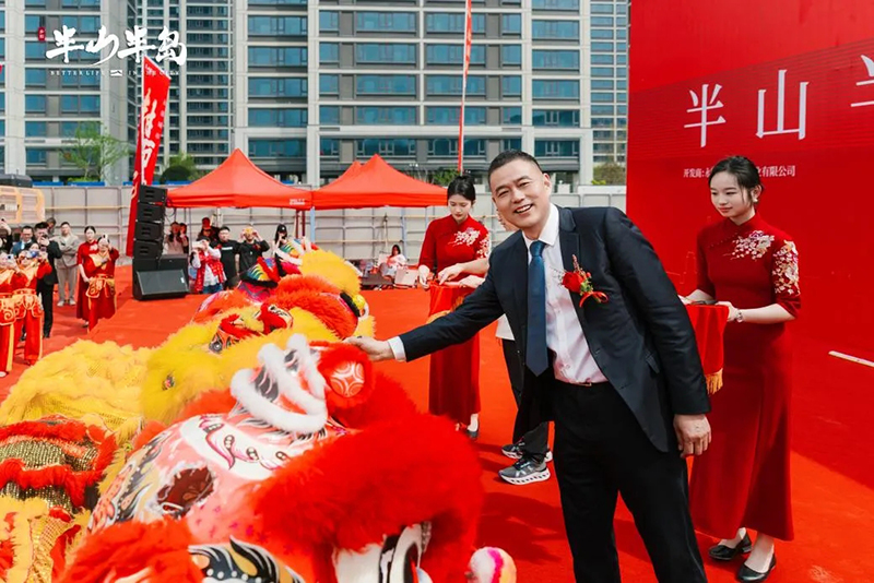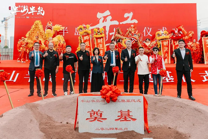 在振奋人心的致辞后,奠基仪式正式启动,现场鼓乐齐奏、彩烟齐放、礼炮齐鸣,气氛喜庆而热烈。在众人的瞩目下,受邀而来的领导和嘉宾们共同为项目奠基培土,将象征坚实稳固、根基永恒的奠基石植入土壤,半山半岛项目正式开工。现场鼓乐齐奏、彩烟缭绕、礼炮齐鸣,气氛喜庆而热烈,与来宾共同见证这一荣耀时刻。在开工礼炮的轰鸣声中,典礼圆满礼成。