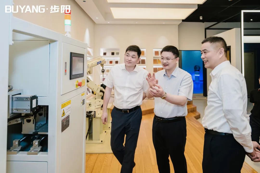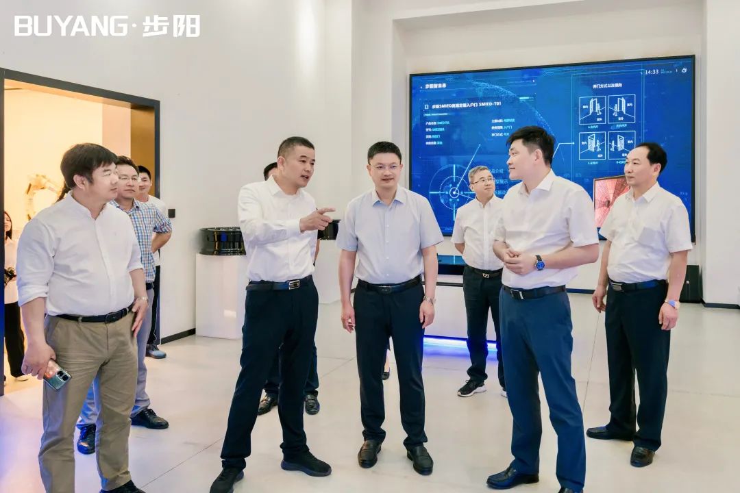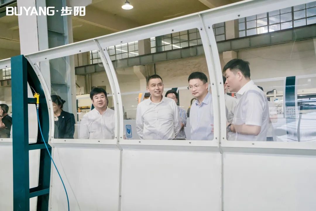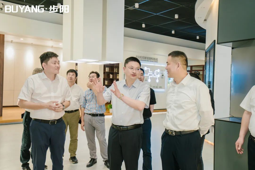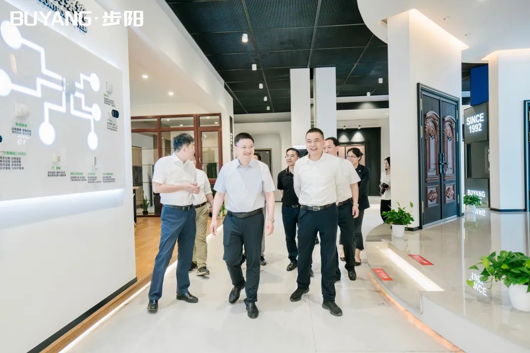 集团董事长徐步云陪同吕书记一行参观了黄瓜下载APP最新下载科技馆、党建中心及门成品展厅/汽轮/大数据中心,黄瓜下载APP最新下载工匠室、5G智能流水线,并听取总经办副总经理朱宁介绍公司科技创新转型、生产自动化流水线等相关介绍解说。